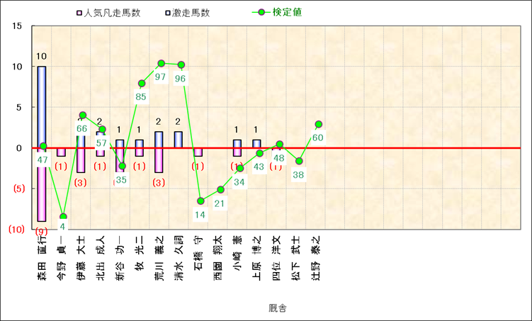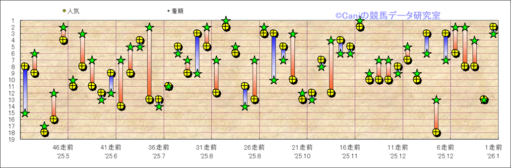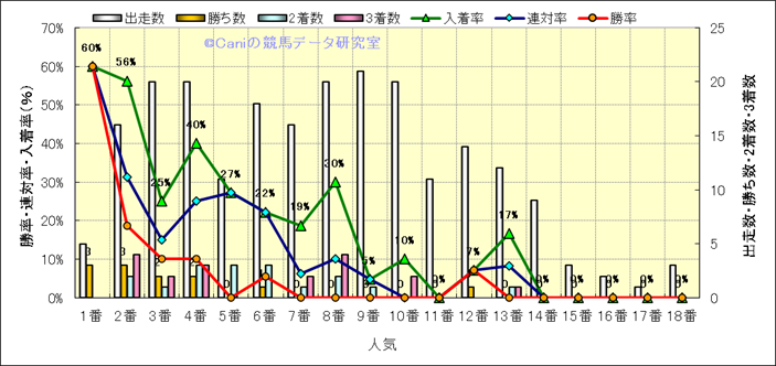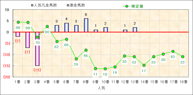 人気凡走馬:1-3番人気で着外、激走馬:5-18番人気で入着 |