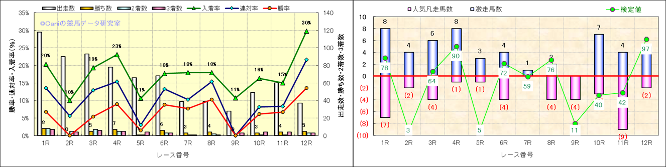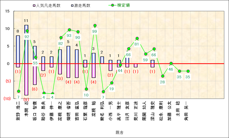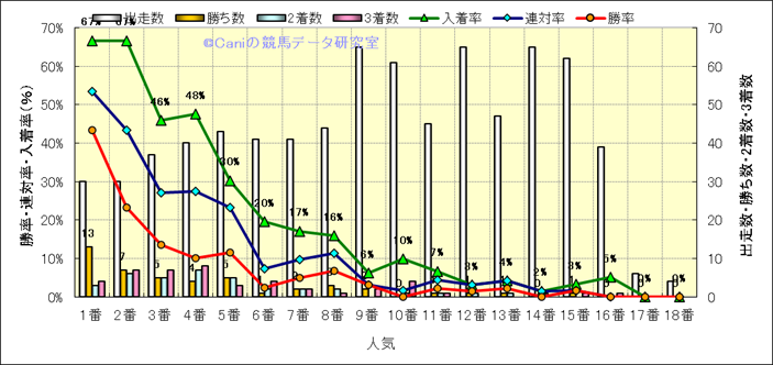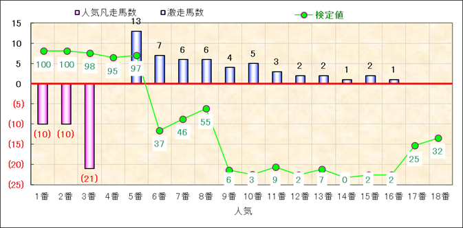 人気凡走馬:1-3番人気で着外、激走馬:5-18番人気で入着 |