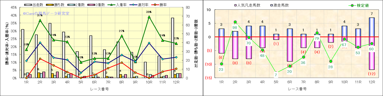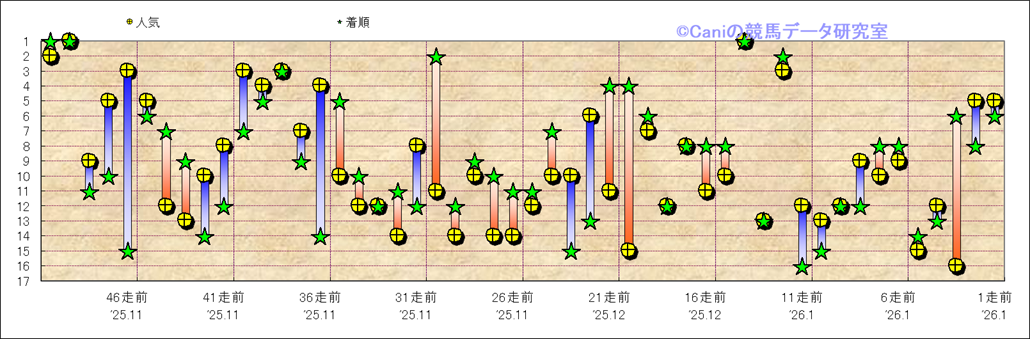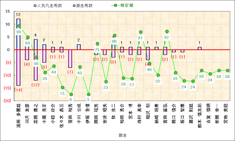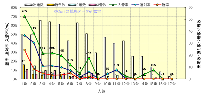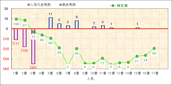 人気凡走馬:1-3番人気で着外、激走馬:5-18番人気で入着 |