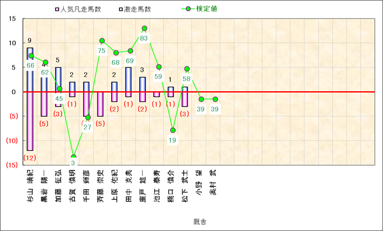 人気凡走馬:1-3番人気で着外、激走馬:5-18番人気で入着 |