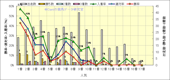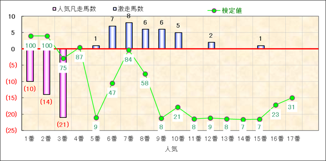 人気凡走馬:1-3番人気で着外、激走馬:5-18番人気で入着 |