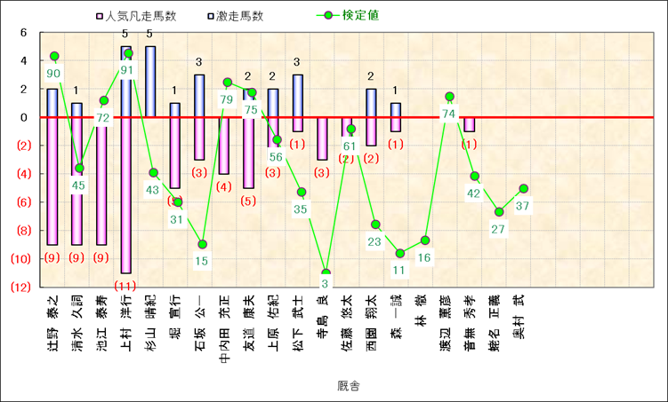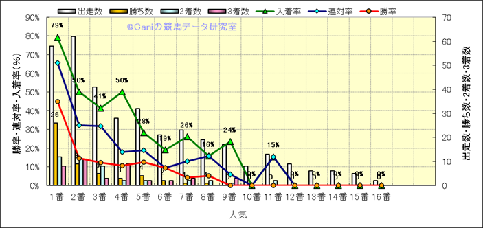 人気凡走馬:1-3番人気で着外、激走馬:5-18番人気で入着 |