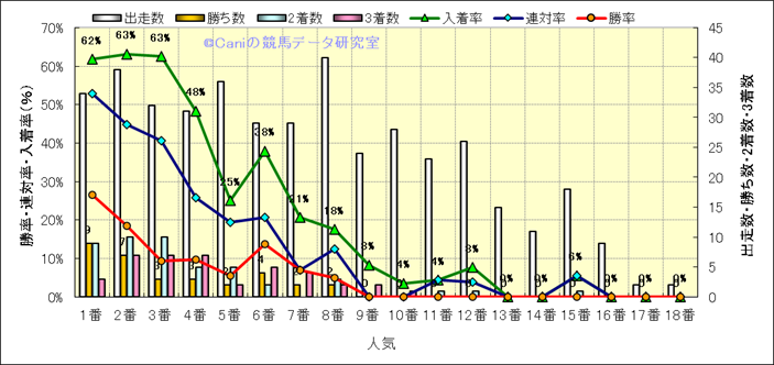 人気凡走馬:1-3番人気で着外、激走馬:5-18番人気で入着 |