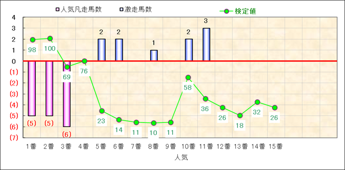 人気凡走馬:1-3番人気で着外、激走馬:5-18番人気で入着 |