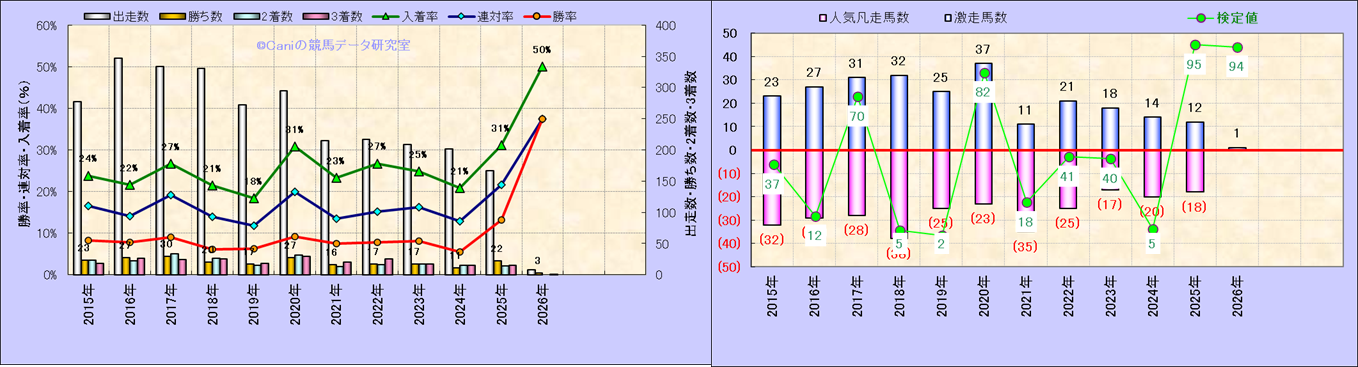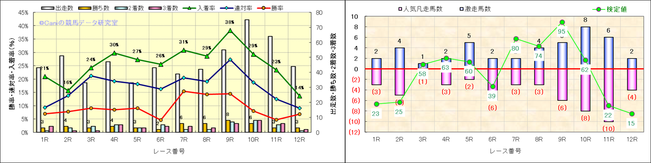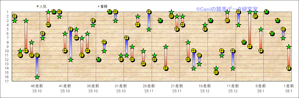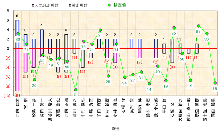 人気凡走馬:1-3番人気で着外、激走馬:5-18番人気で入着 |