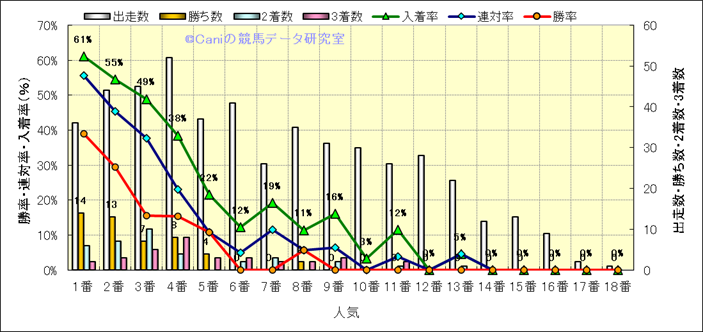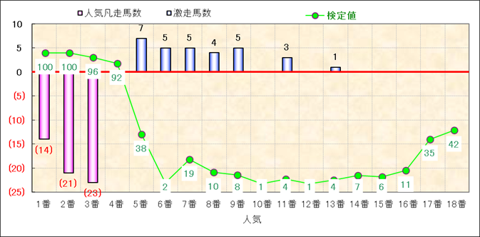人気凡走馬:1-3番人気で着外、激走馬:5-18番人気で入着 |