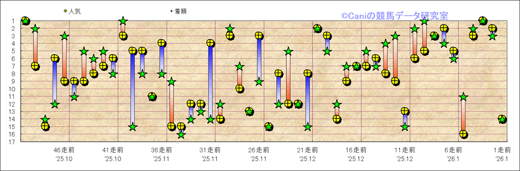所属馬 近50レースの人気と着順 |