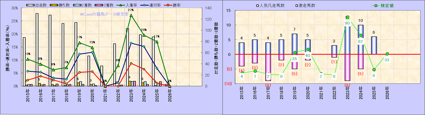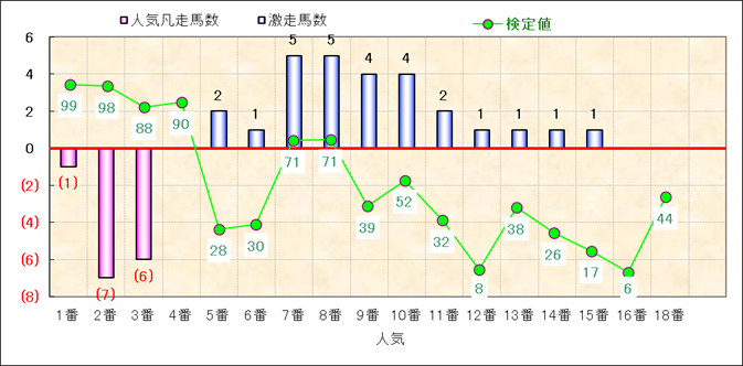 人気凡走馬:1-3番人気で着外、激走馬:5-18番人気で入着 |