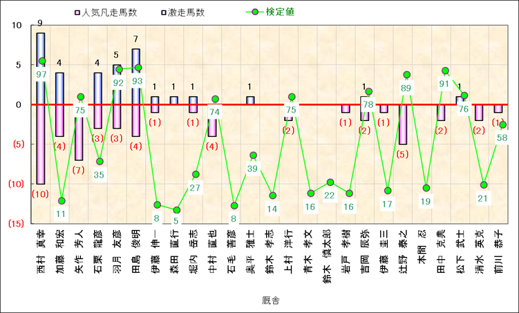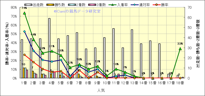 人気凡走馬:1-3番人気で着外、激走馬:5-18番人気で入着 |