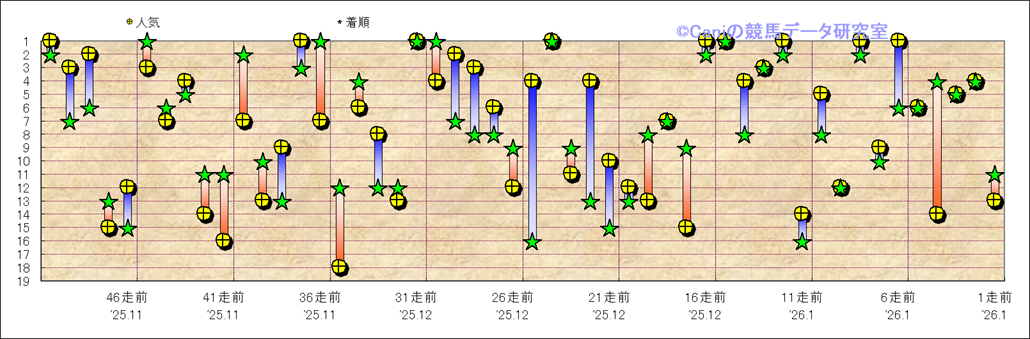 所属馬 近50レースの人気と着順 |