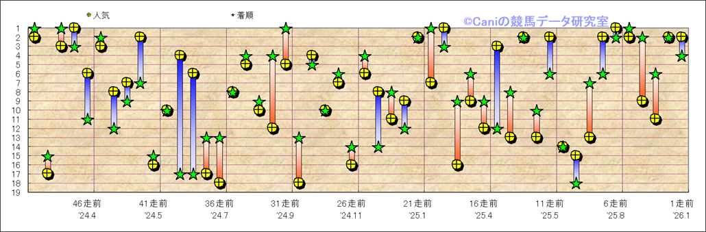 所属馬 近50レースの人気と着順 |