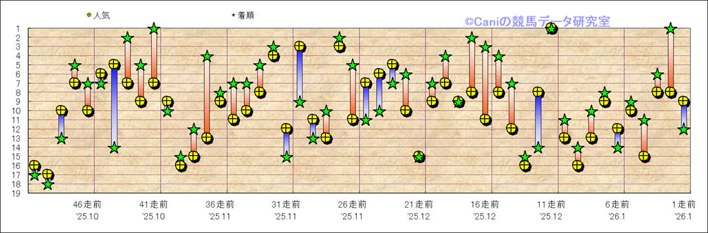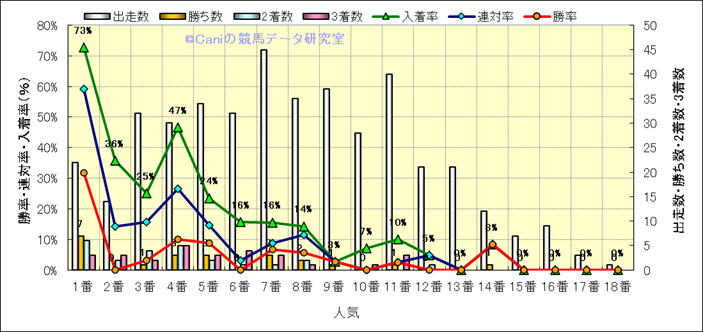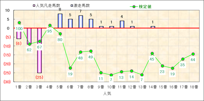 人気凡走馬:1-3番人気で着外、激走馬:5-18番人気で入着 |