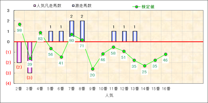 人気凡走馬:1-3番人気で着外、激走馬:5-18番人気で入着 |