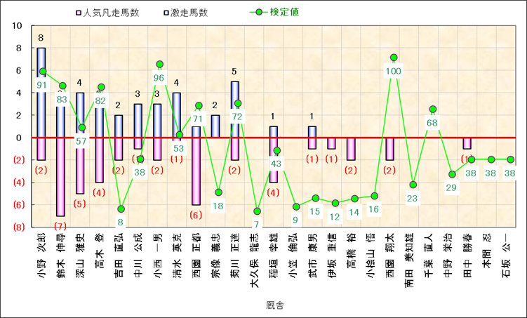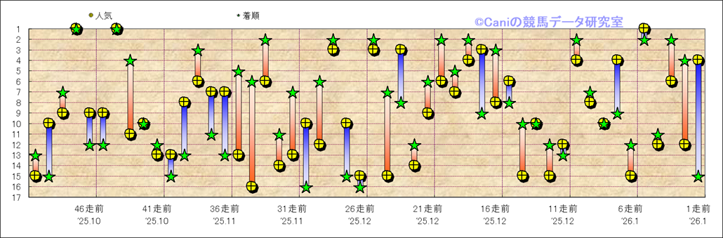 人気凡走馬:1-3番人気で着外、激走馬:5-18番人気で入着 |