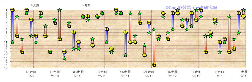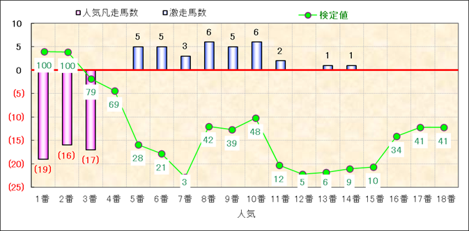 人気凡走馬:1-3番人気で着外、激走馬:5-18番人気で入着 |