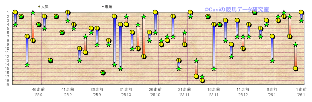 所属馬 近50レースの人気と着順 |