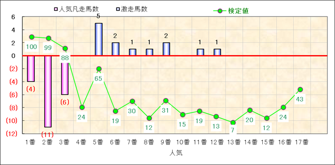 人気凡走馬:1-3番人気で着外、激走馬:5-18番人気で入着 |