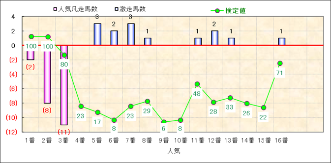 人気凡走馬:1-3番人気で着外、激走馬:5-18番人気で入着 |