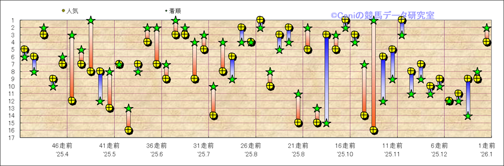 所属馬 近50レースの人気と着順 |