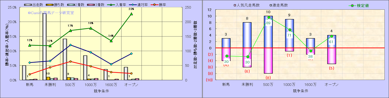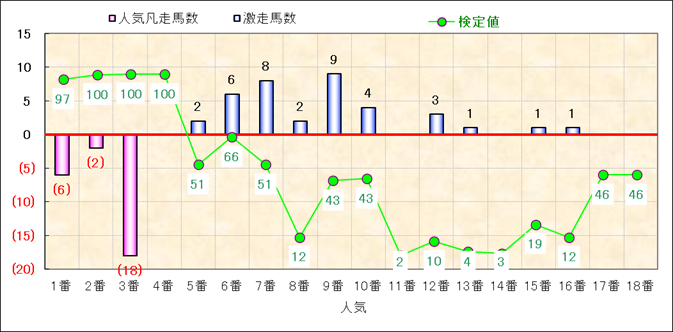 人気凡走馬:1-3番人気で着外、激走馬:5-18番人気で入着 |