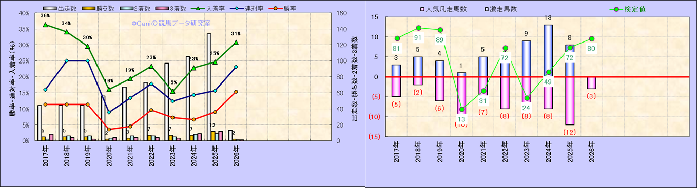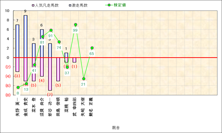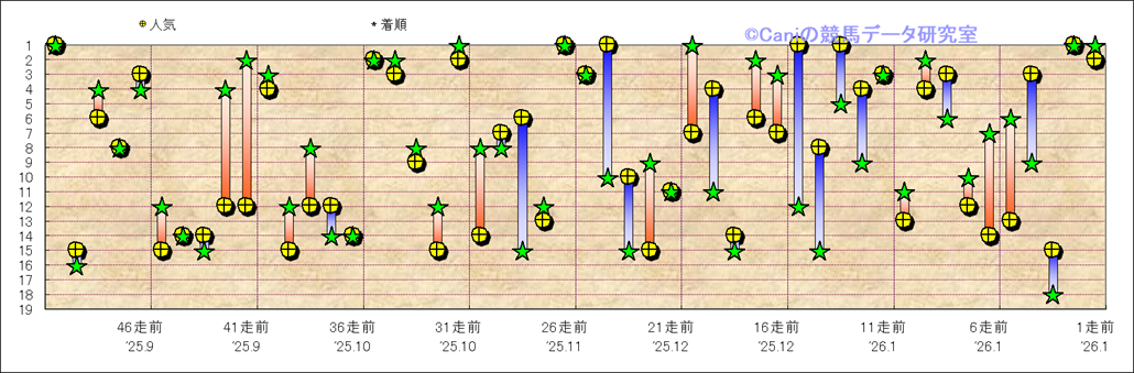 人気凡走馬:1-3番人気で着外、激走馬:5-18番人気で入着 |