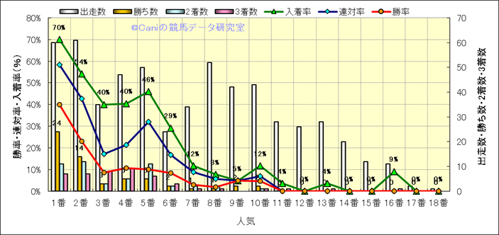 人気凡走馬:1-3番人気で着外、激走馬:5-18番人気で入着 |
