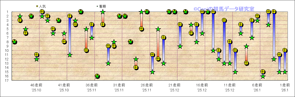 所属馬 近50レースの人気と着順 |