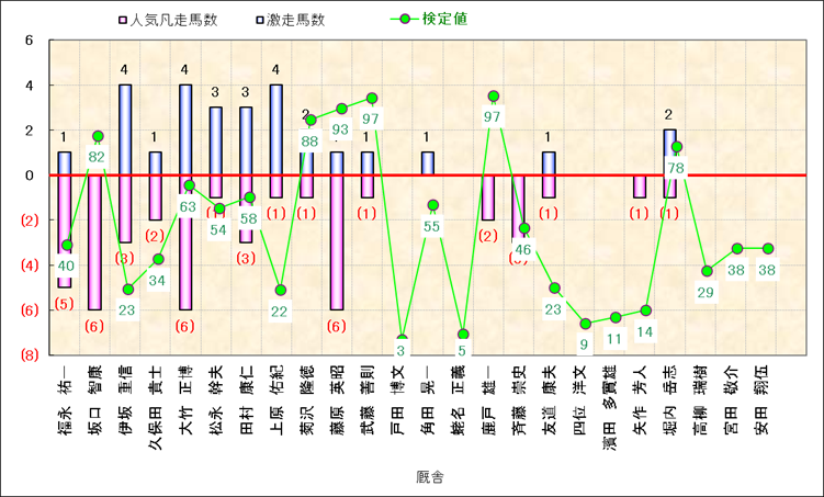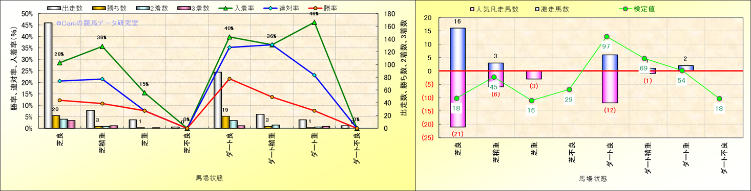 人気凡走馬:1-3番人気で着外、激走馬:5-18番人気で入着 |