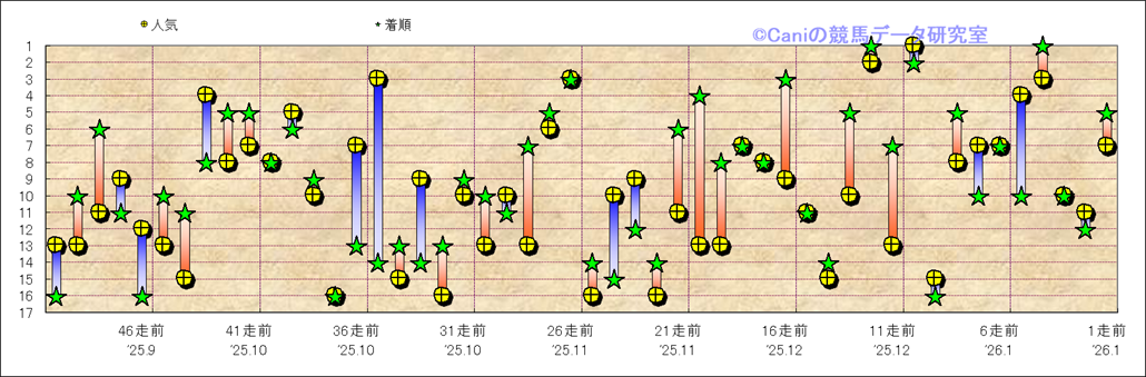 所属馬 近50レースの人気と着順 |