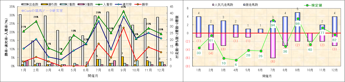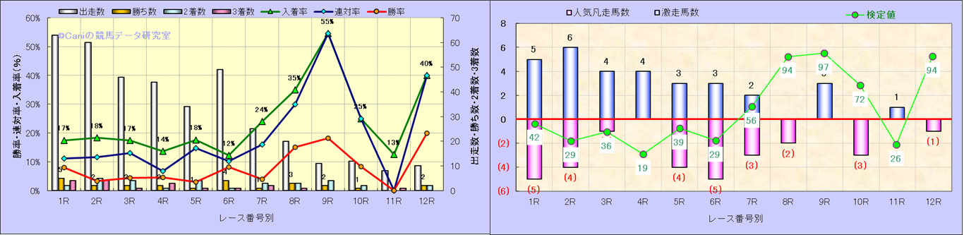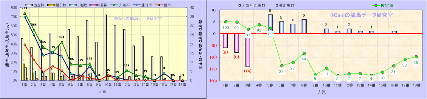 人気凡走馬:1-3番人気で着外、激走馬:5-18番人気で入着 |
