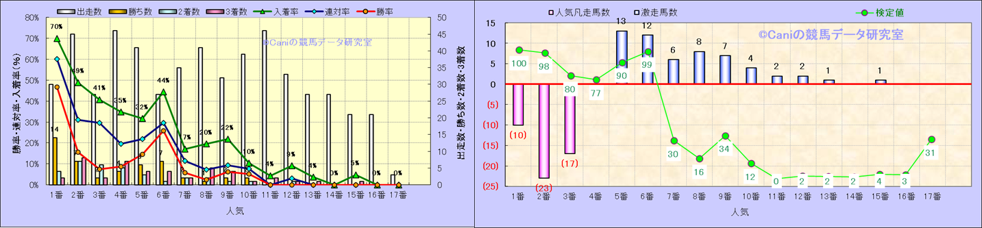人気凡走馬:1-3番人気で着外、激走馬:5-18番人気で入着 |