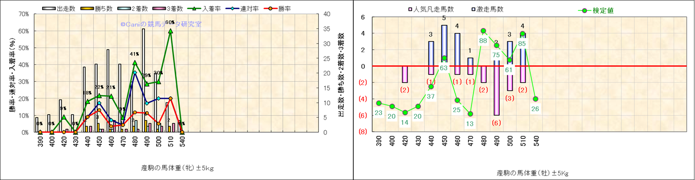 牡産駒の体重別成績-近3年- |