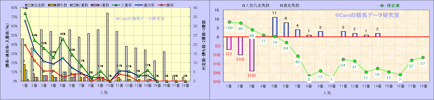 人気凡走馬:1-3番人気で着外、激走馬:5-18番人気で入着 |