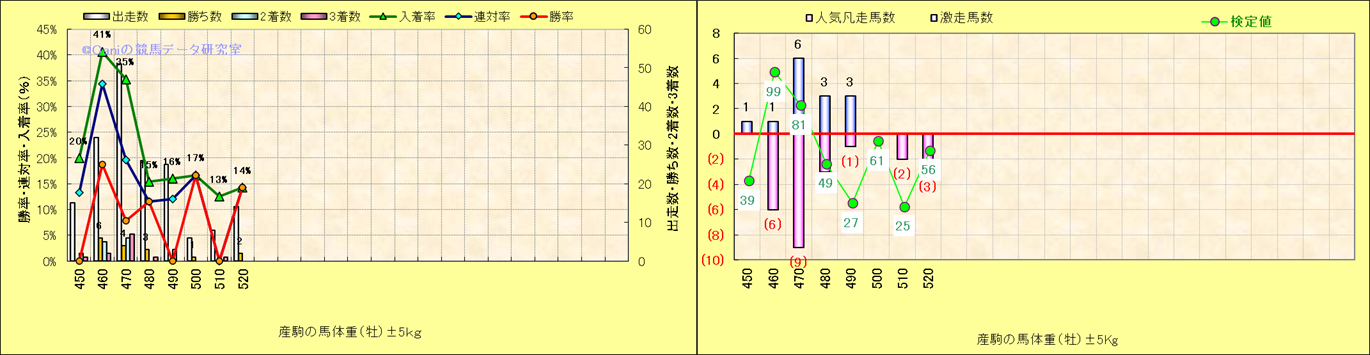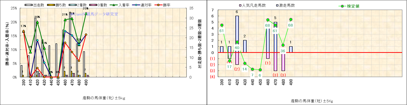 牡産駒の体重別成績-近3年- |