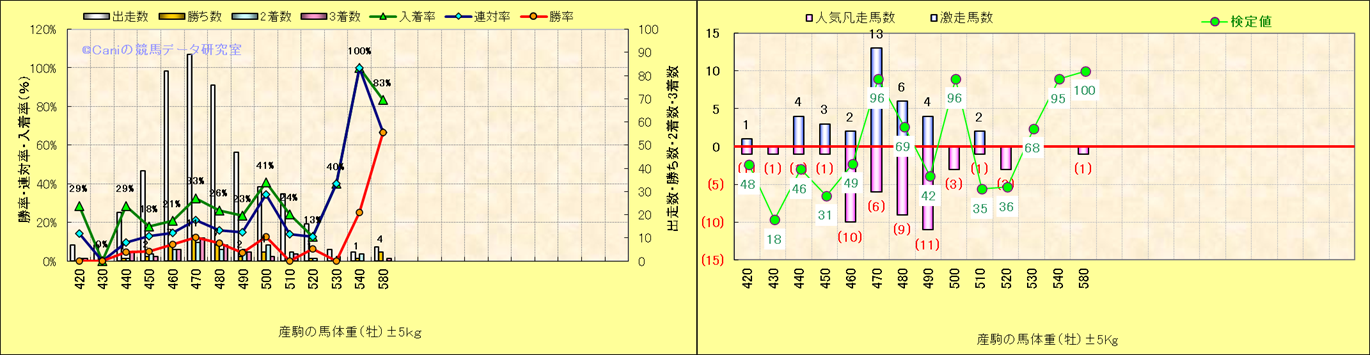 牡産駒の体重別成績-近3年- |
