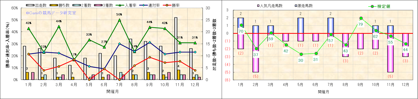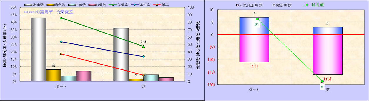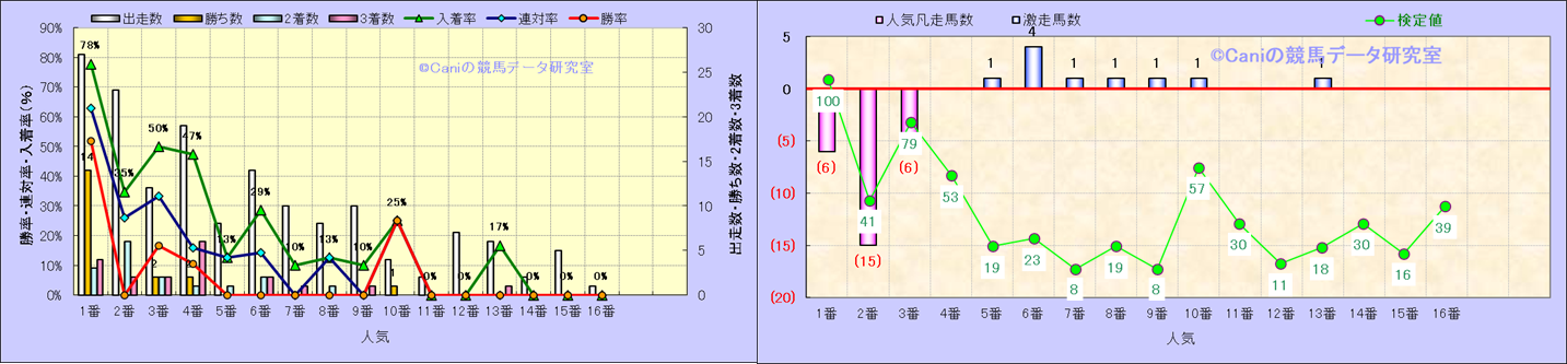 人気凡走馬:1-3番人気で着外、激走馬:5-18番人気で入着 |