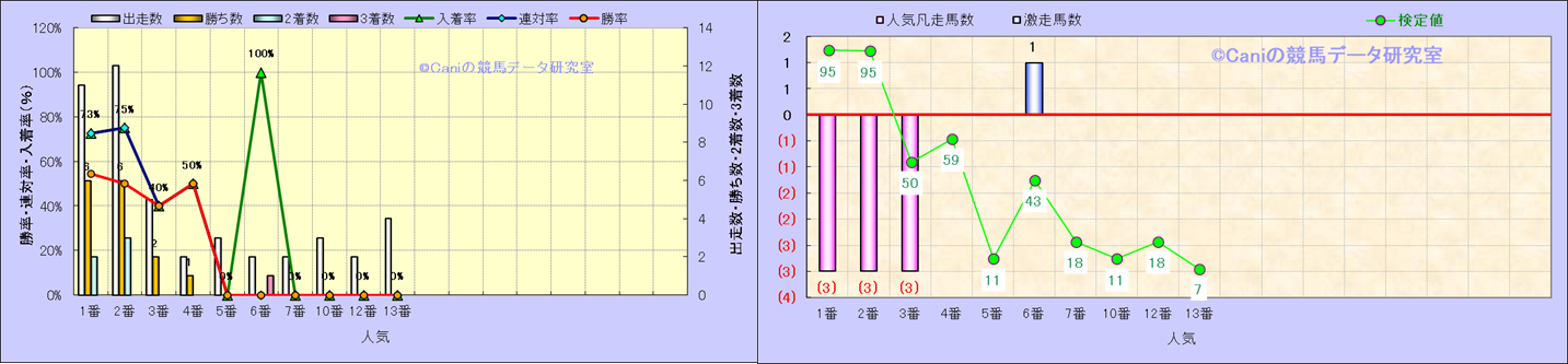 人気凡走馬:1-3番人気で着外、激走馬:5-18番人気で入着 |