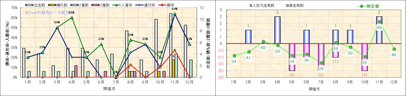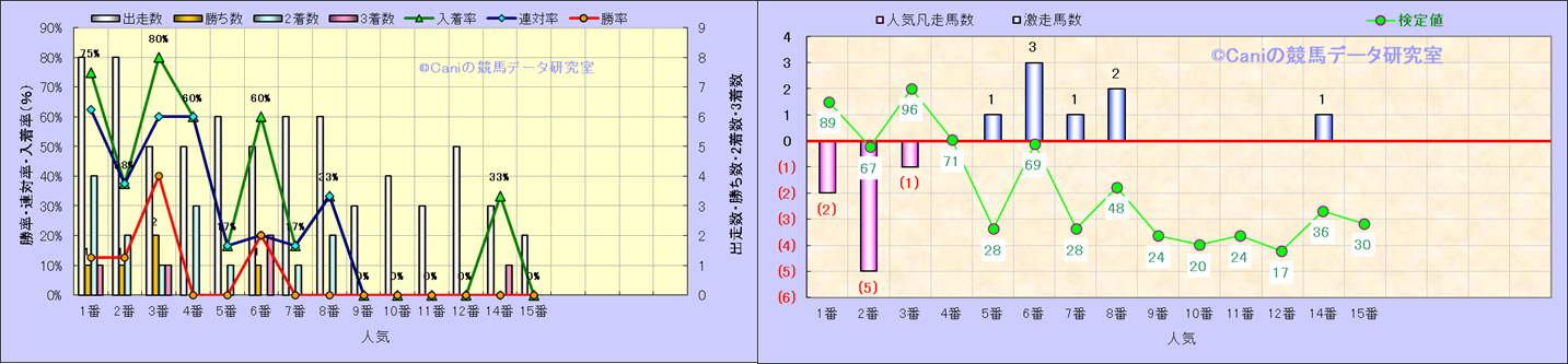 人気凡走馬:1-3番人気で着外、激走馬:5-18番人気で入着 |