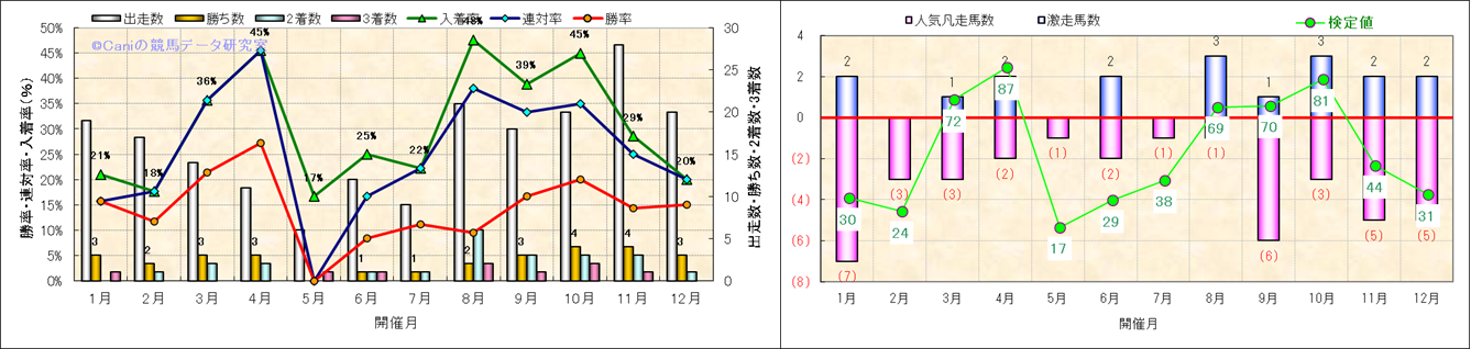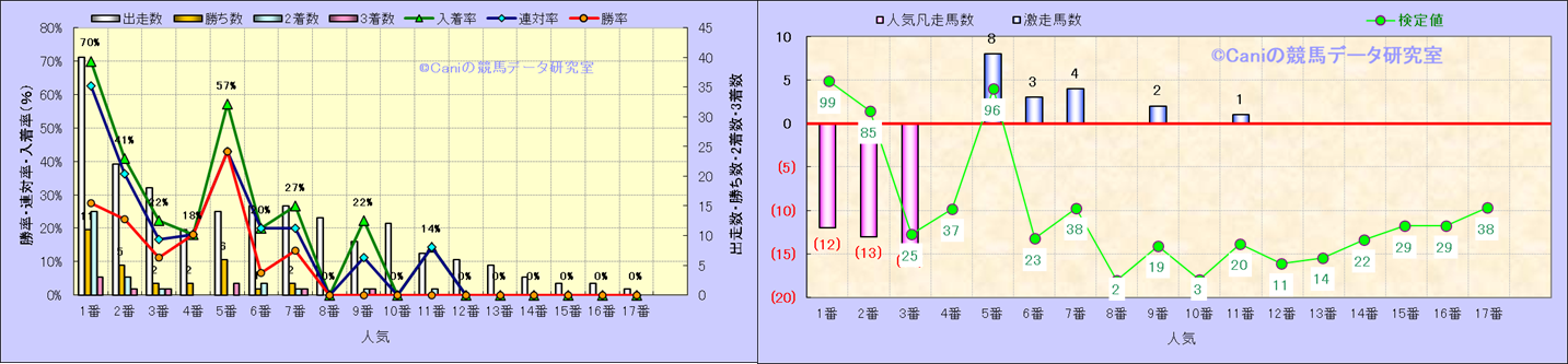 人気凡走馬:1-3番人気で着外、激走馬:5-18番人気で入着 |