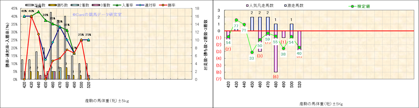 牡産駒の体重別成績-近3年- |