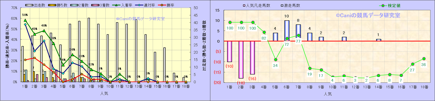 人気凡走馬:1-3番人気で着外、激走馬:5-18番人気で入着 |