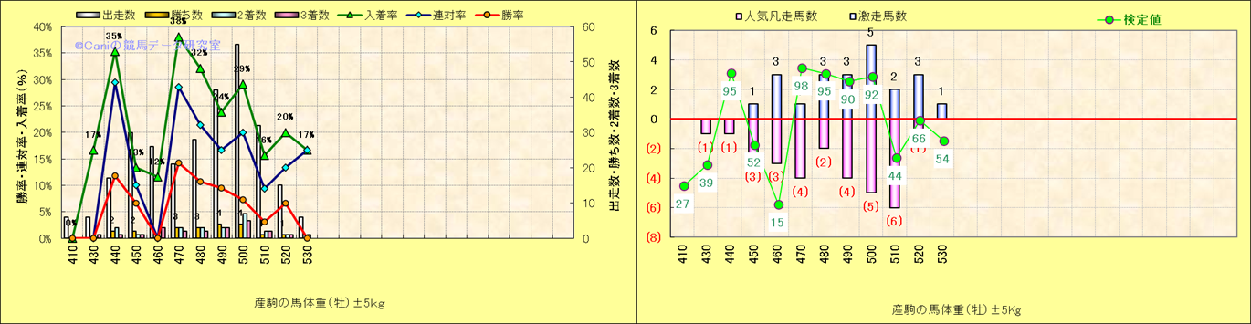 牡産駒の体重別成績-近3年- |