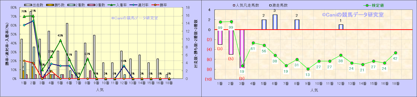 人気凡走馬:1-3番人気で着外、激走馬:5-18番人気で入着 |
