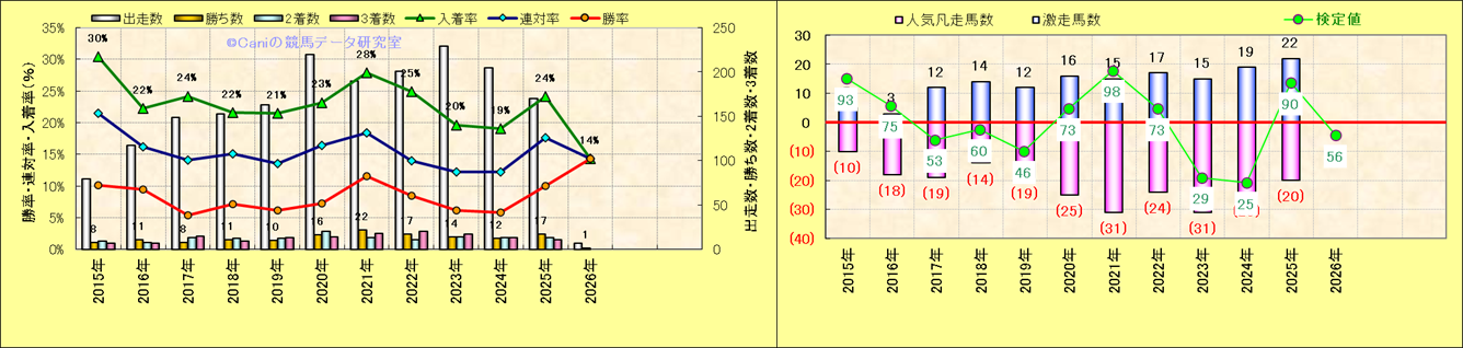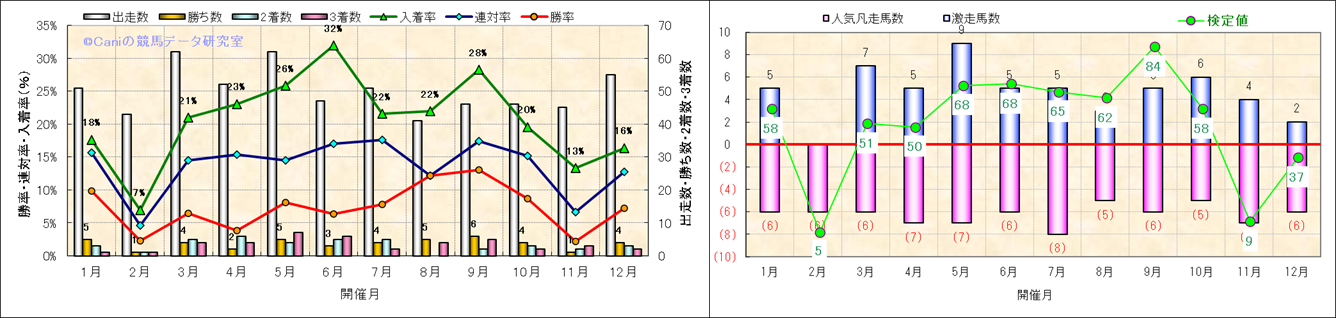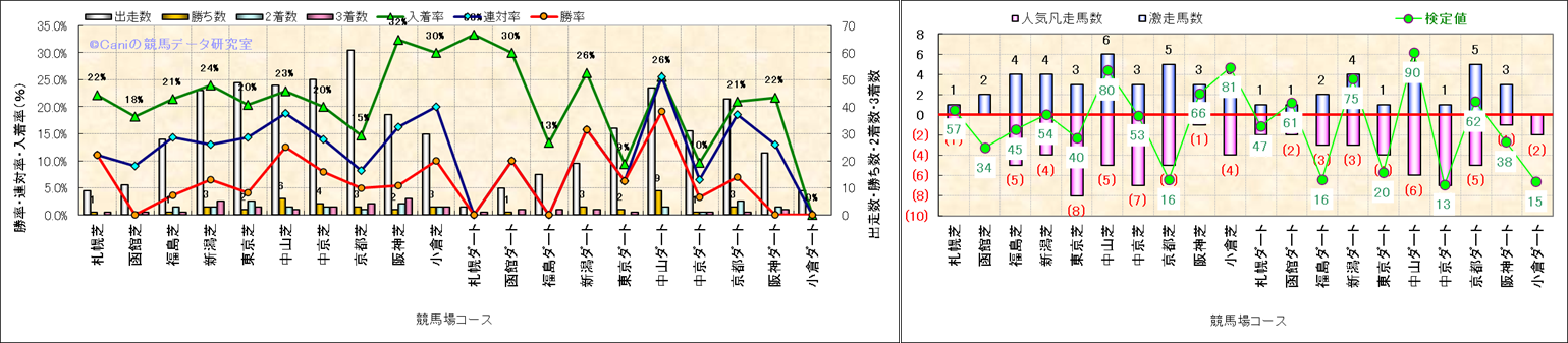 人気凡走馬:1-3番人気で着外、激走馬:5-18番人気で入着 |