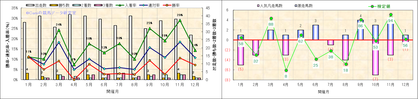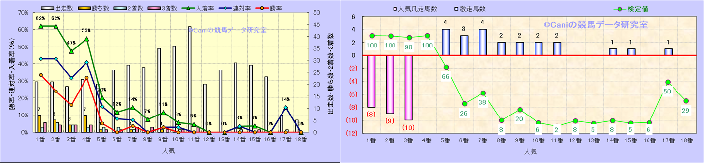 人気凡走馬:1-3番人気で着外、激走馬:5-18番人気で入着 |
