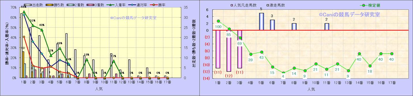 人気凡走馬:1-3番人気で着外、激走馬:5-18番人気で入着 |