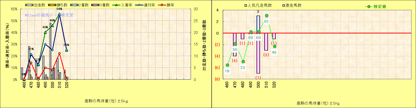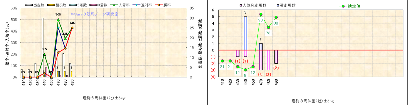 牝産駒の体重別成績-近3年- |