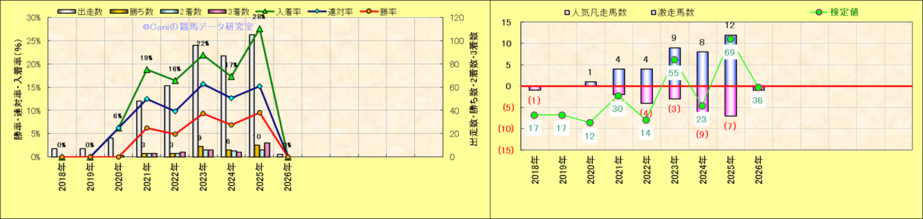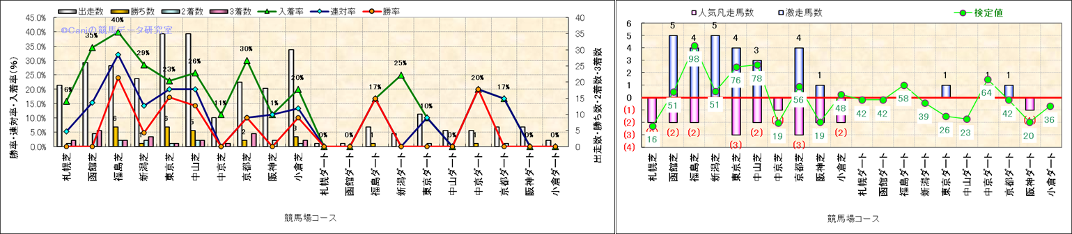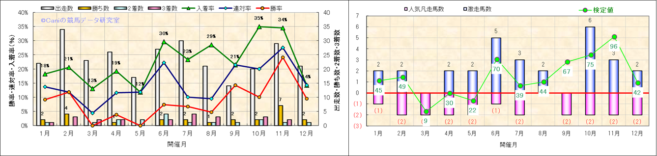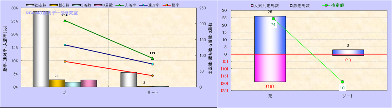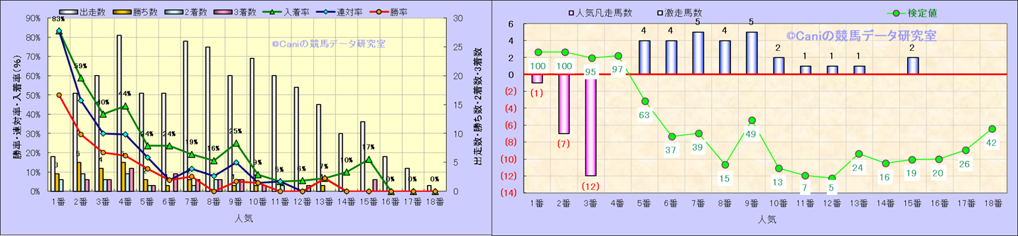 人気凡走馬:1-3番人気で着外、激走馬:5-18番人気で入着 |