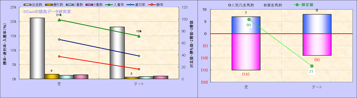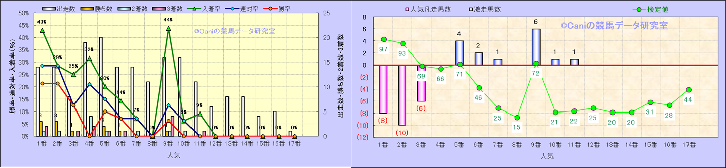 人気凡走馬:1-3番人気で着外、激走馬:5-18番人気で入着 |
