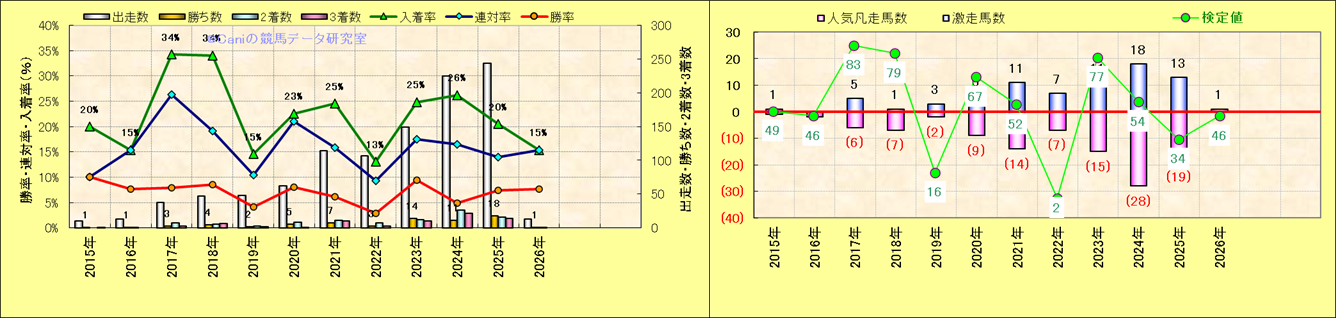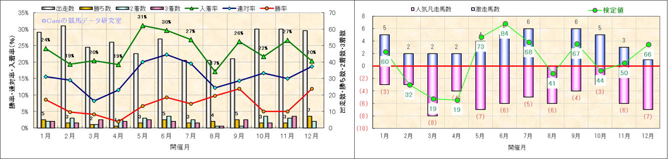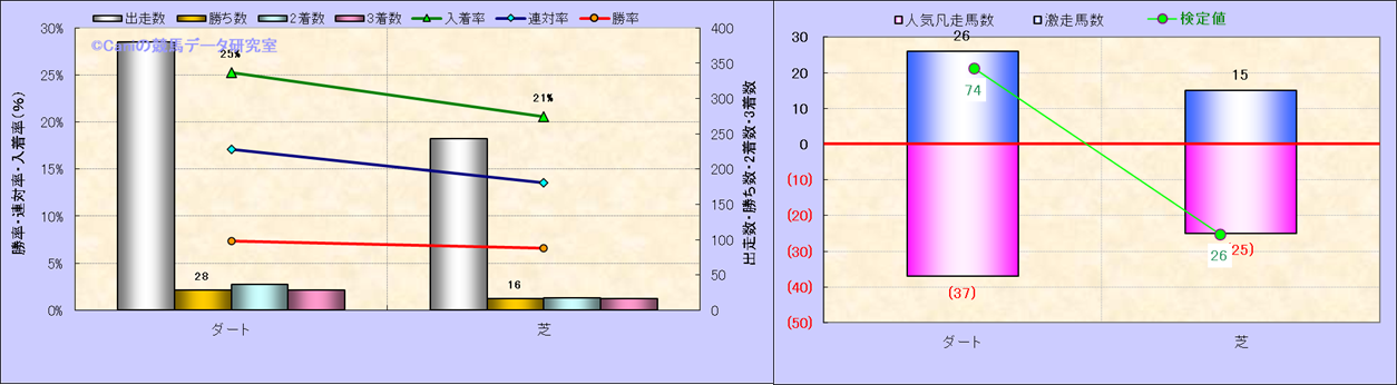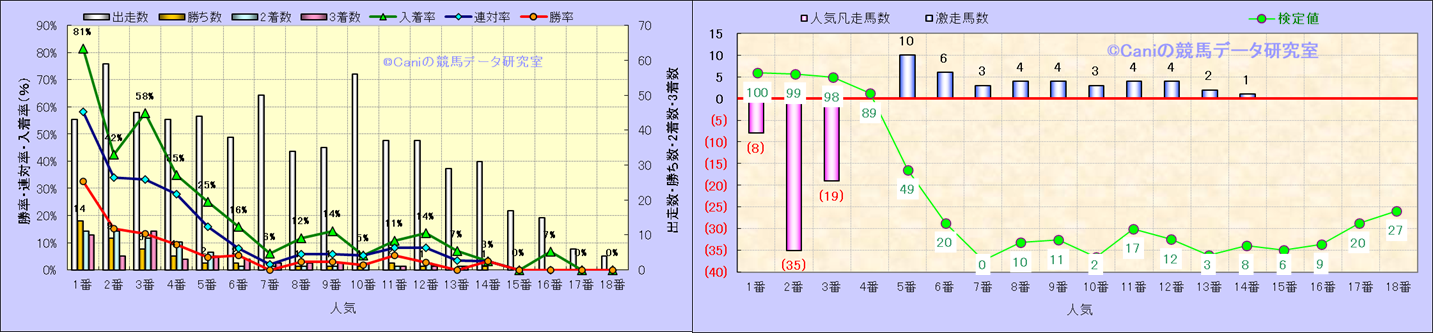 人気凡走馬:1-3番人気で着外、激走馬:5-18番人気で入着 |